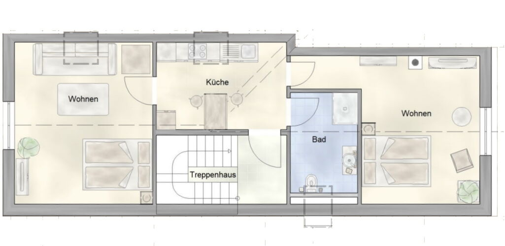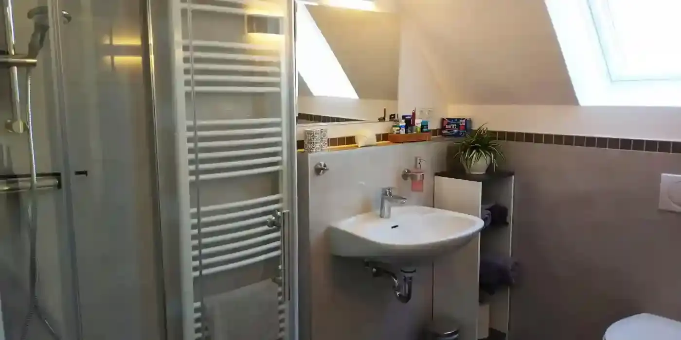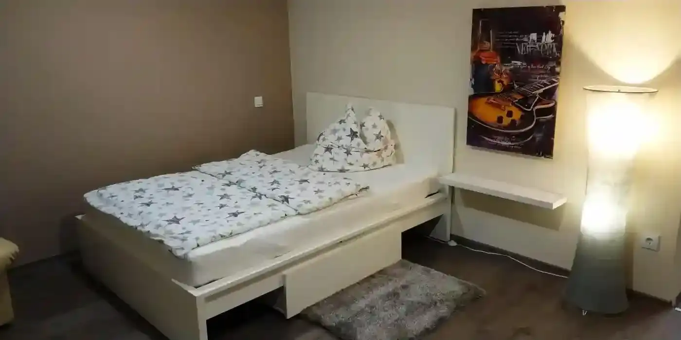 Willkommen in unserer Ferienwohnung An den Wiesen! Es erwarten Sie zwei Schlafzimmer mit großen Betten und ein frisch renoviertes Tageslicht-Duschbad zur vollen Entspannung.